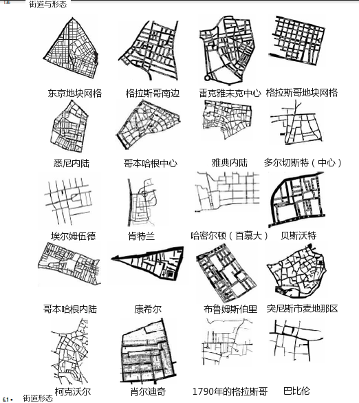 另一些分類法模式側(cè)重于城市街道的形態(tài)學(xué),馬歇爾在《街道與形態(tài)》里對(duì)此有詳細(xì)論述: