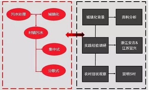 城鎮(zhèn)化下污水處理集中式和分散式問題的集中點聚合在村鎮(zhèn)污水處理領(lǐng)域。本著充分了解現(xiàn)有處理經(jīng)驗和實地現(xiàn)狀的目的,首先結(jié)合城鎮(zhèn)化發(fā)展背景和現(xiàn)有集中式污水廠資料,進行集中式污水處理技術(shù)的統(tǒng)計分析;其次,了解在國內(nèi)外分散式污水處理模式的同時,重點參觀學(xué)習(xí)國內(nèi)規(guī)劃設(shè)計較為成熟的村鎮(zhèn)(浙江安吉、江蘇宜興等地);最后,為更好的了解農(nóng)村污水處理的現(xiàn)狀,在我們熟悉的上海崇明深入農(nóng)村當(dāng)?shù)?,進行實地走訪、實驗調(diào)查,充分了解當(dāng)?shù)爻擎?zhèn)化污水處理規(guī)劃中的問題。