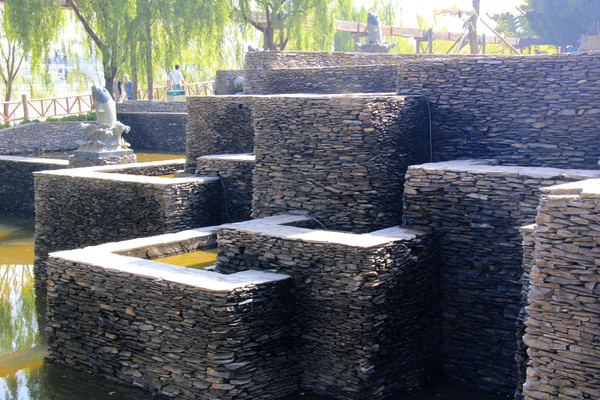 (2)水景在美觀性方面的要求。水景的視覺效果在很大程度上影響著整體景觀的效果,不論是溪流、跌水、噴泉還是其他的水景都要仔細(xì)考慮其具體的造型,使其成為景觀中的點(diǎn)睛之筆。設(shè)計(jì)水景時(shí)要注意將各種管線和設(shè)施妥善安放,最好隱藏起來。