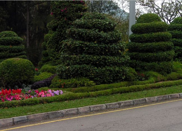 分隔帶綠化的主要功能是按不同的行駛方向分隔車(chē)道,防止車(chē)燈眩光干擾,減輕對(duì)開(kāi)車(chē)輛接近時(shí)司機(jī)心理上的危險(xiǎn)感,或因行車(chē)而引起的精神疲勞,引導(dǎo)視線(xiàn)和改善環(huán)境。中央分隔帶的設(shè)計(jì),在增強(qiáng)交通功能并能夠持久穩(wěn)定方面,要求考慮通過(guò)常綠灌木實(shí)現(xiàn),選擇時(shí)應(yīng)重點(diǎn)考慮選用耐尾氣污染、生長(zhǎng)健壯、慢生和耐修剪的灌木品種,一般可選用石楠、金葉女貞、紅花繼木、蜀檜柏、冬青等。在一些地段的分隔帶設(shè)計(jì)中,還可以組團(tuán)式規(guī)則種植棕櫚、櫻花、西府海棠等特色小喬木來(lái)體現(xiàn)植物景觀的差異性。