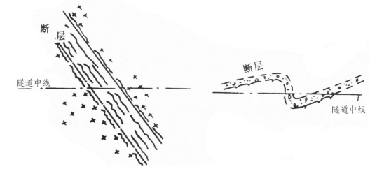 斷層破碎帶是常見(jiàn)的不良地質(zhì)段,斷層帶內(nèi)巖體破碎,呈塊石、破碎或角礫狀,甚至呈斷層泥,巖體強(qiáng)度低,圍巖自穩(wěn)能力差,施工困難。其施工難度取決于斷層的性質(zhì)、斷層破碎帶的寬度、填充物、含水性和斷層本身的活動(dòng)性以及隧道軸線和斷層構(gòu)造線方向的組合關(guān)系等因素。