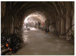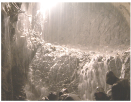 有時(shí)遇到填滿飽含水分的充填物溶槽,坑道掘進(jìn)至邊緣時(shí),充填物不斷涌入坑道,難以遏止,甚至地表開(kāi)裂下沉,山體壓力劇增;有的溶洞、暗河迂回交錯(cuò)、分支錯(cuò)綜復(fù)雜、范圍寬廣,處理十分困難。