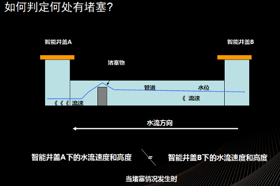 美國(guó)某城市采用了智能井蓋結(jié)合 IBM 的智慧城市平臺(tái),提前應(yīng)對(duì)強(qiáng)降雨天氣對(duì)市民的影響。該城市部署了 44 個(gè)智能井蓋,每 5 分鐘這些井蓋就往運(yùn)營(yíng)平臺(tái)發(fā)送一次數(shù)據(jù),其中包括水位、水流速和水溫。同時(shí),該系統(tǒng)還整合了氣象信息,城市管網(wǎng)拓?fù)湫畔?,交通信息等。下圖說(shuō)明了分析技術(shù)如何通過(guò)智能井蓋的信息分析管道的擁堵。