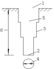 1-孔口;2-孔底;3-孔壁;4-孔經(jīng);5-換經(jīng);6-孔深