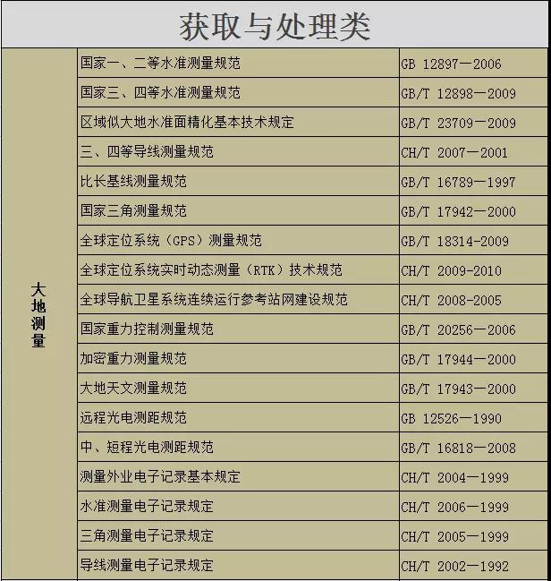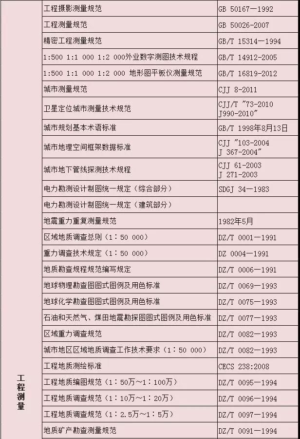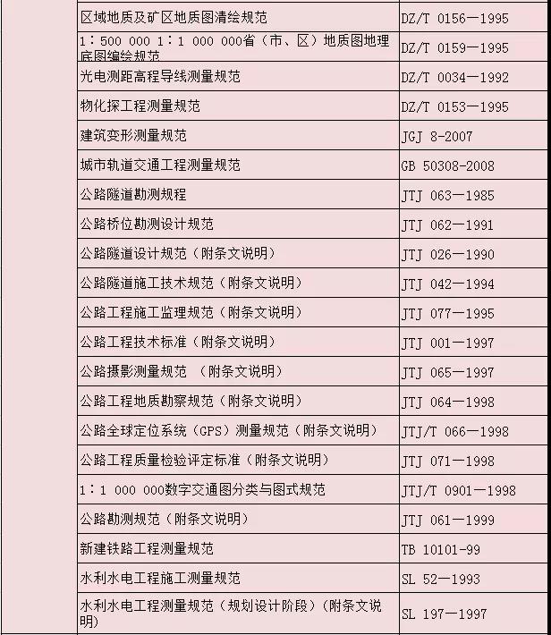 測(cè)繪專業(yè)相關(guān)標(biāo)準(zhǔn)大全