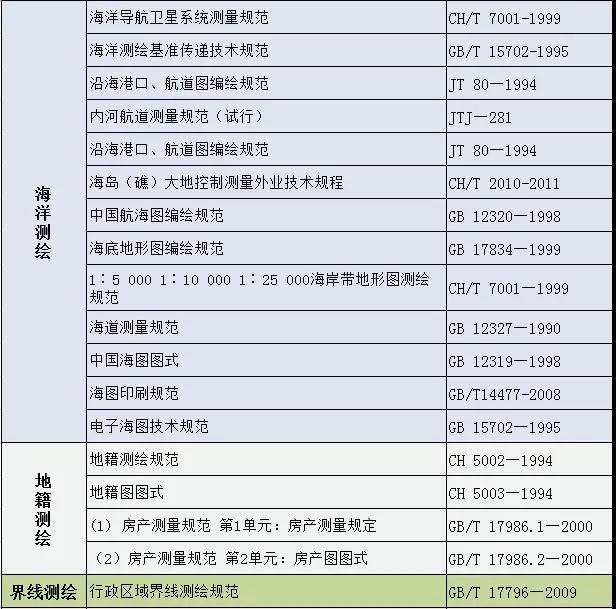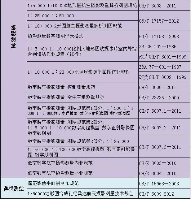 測(cè)繪專業(yè)國(guó)家及行業(yè)標(biāo)準(zhǔn)匯總