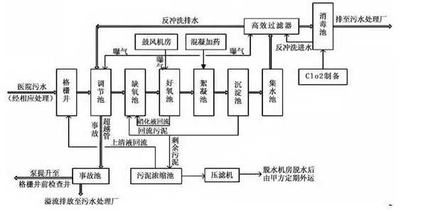 醫(yī)院污水指醫(yī)院產(chǎn)生的含有病原體、重金屬、消毒劑、有機(jī)溶劑、酸、堿以及放射性等的污水,具有空間污染、急性傳染和潛伏性傳染等特征,不經(jīng)有效處理會(huì)成為一條疫病擴(kuò)散的重要途徑和嚴(yán)重污染環(huán)境。因此,醫(yī)院的污水處理站建設(shè)成了解決這一問(wèn)題的關(guān)鍵所在。