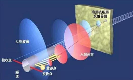利用地震波在不均勻地質(zhì)體中產(chǎn)生的反射波特性來(lái)預(yù)報(bào)隧洞掌子面前方及周圍臨近區(qū)域的地質(zhì)情況,可以檢測(cè)出掌子面前方巖性的變化,可以在鉆爆法或TBM開(kāi)挖的隧道中使用,而不必接近掌子面。該法有效預(yù)報(bào)距離100~200m。