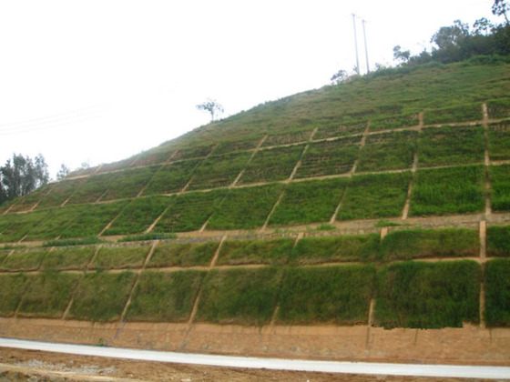 經(jīng)過采用極限平衡法、數(shù)值分析方法對邊坡穩(wěn)定性進行分析計算,得出保證高邊坡穩(wěn)定所需要的錨固力。通過在坡體內(nèi)施工預(yù)應(yīng)力錨索、打入一定數(shù)量的系統(tǒng)錨桿(土釘)或注漿加固對邊坡進行處治。系統(tǒng)預(yù)應(yīng)力錨索為主動受力,單根錨索設(shè)計錨固力可高達3000KN,是高邊坡深層加固防護的主要措施。系統(tǒng)錨桿(土釘)對邊坡防護的機理相當(dāng)于螺栓的作用,是一種對邊坡進行中淺層加固的手段。根據(jù)滑動面的埋深確定邊坡不穩(wěn)定塊體大小及所需錨固力,一般多用預(yù)應(yīng)力錨(索)桿有針對性的進行加固防護。為防治邊坡表面風(fēng)化、沖蝕或弱化,主要采取植物防護、砌體封閉防護、噴射(網(wǎng)噴)混凝土等作為坡面防護措施。