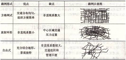 物流園區(qū)的路網(wǎng)結(jié)構(gòu)是指園區(qū)道路形成的骨架形式(幾何圖形)。園區(qū)道路網(wǎng)結(jié)構(gòu)可以建設(shè)為方格形、放射環(huán)形、自由式3種類型,具體特點(diǎn)和使用條件如表所示。