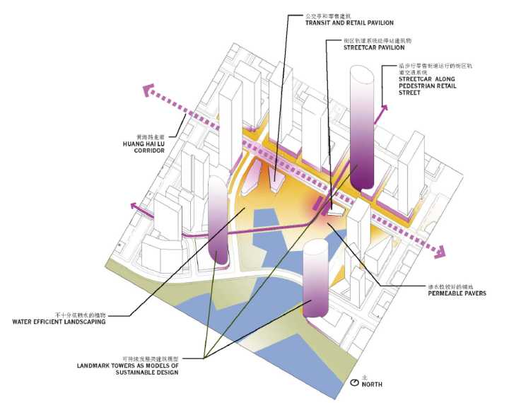 這樣的思考——實(shí)在是沒有建樹,隨手翻一個(gè)早年的som的城市設(shè)計(jì)方案,就已然做出應(yīng)對(duì),對(duì)于街道空間連續(xù)性的思考(下圖來自[SOM][2008]武漢王家墩商務(wù)核心區(qū)設(shè)計(jì)規(guī)劃方案)