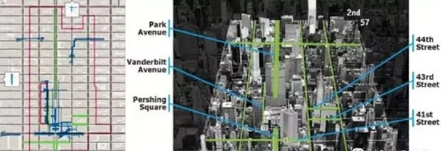 2017年8月批準的曼哈頓中城East Midtown的控制性規(guī)劃修訂案將打造公共空間、營造活動場所作為核心目標,使用步行廣場、共享街道和公交走廊三種工具規(guī)劃交通空間,從公共開放空間視角重新設(shè)計街道和步道,借助城市設(shè)計手法激發(fā)街道活力,重新安排未利用空間以滿足步行者需求,重新分配街道空間以反映各類使用者真實需求。公共空間改造涉及41街、43街、44街、潘興廣場、范德堡大街和派克大街。