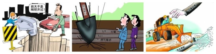 由于城市道路建設發(fā)展快,同一路段被反復開挖多次“馬路拉鏈”問題嚴重,施工導致破壞管線的安全事故頻有發(fā)生,特別是老城區(qū)地下管網(wǎng)設施老化、腐蝕嚴重為居民提供供水、供氣的服務能力不足,針對以上問題,通過管線普查收集的地下管線數(shù)據(jù)可以為城市道路綜合整治、河道綜合治理、排水達標建設、管線下地改造提供信息保障服務。