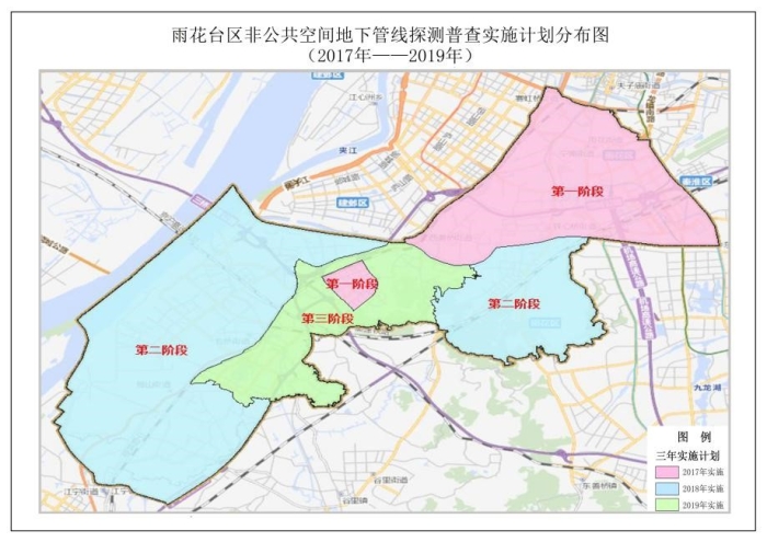雨花臺區(qū)公共區(qū)域地下管線普查總長為3705公里。非公共空間地下管線總長度預估約為 4300 公里,于 2017 年 9 月啟動,分三年逐步實施,2019年12月底完成任務。