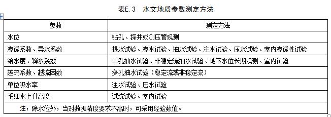 水文地質(zhì)參數(shù)測定的一般方法見表E.3。