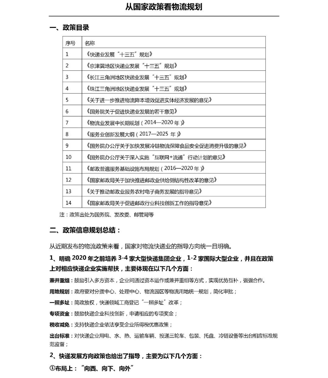 從近期發(fā)布的物流政策來看,國(guó)家對(duì)物流快遞業(yè)的指導(dǎo)方向統(tǒng)一且明確。