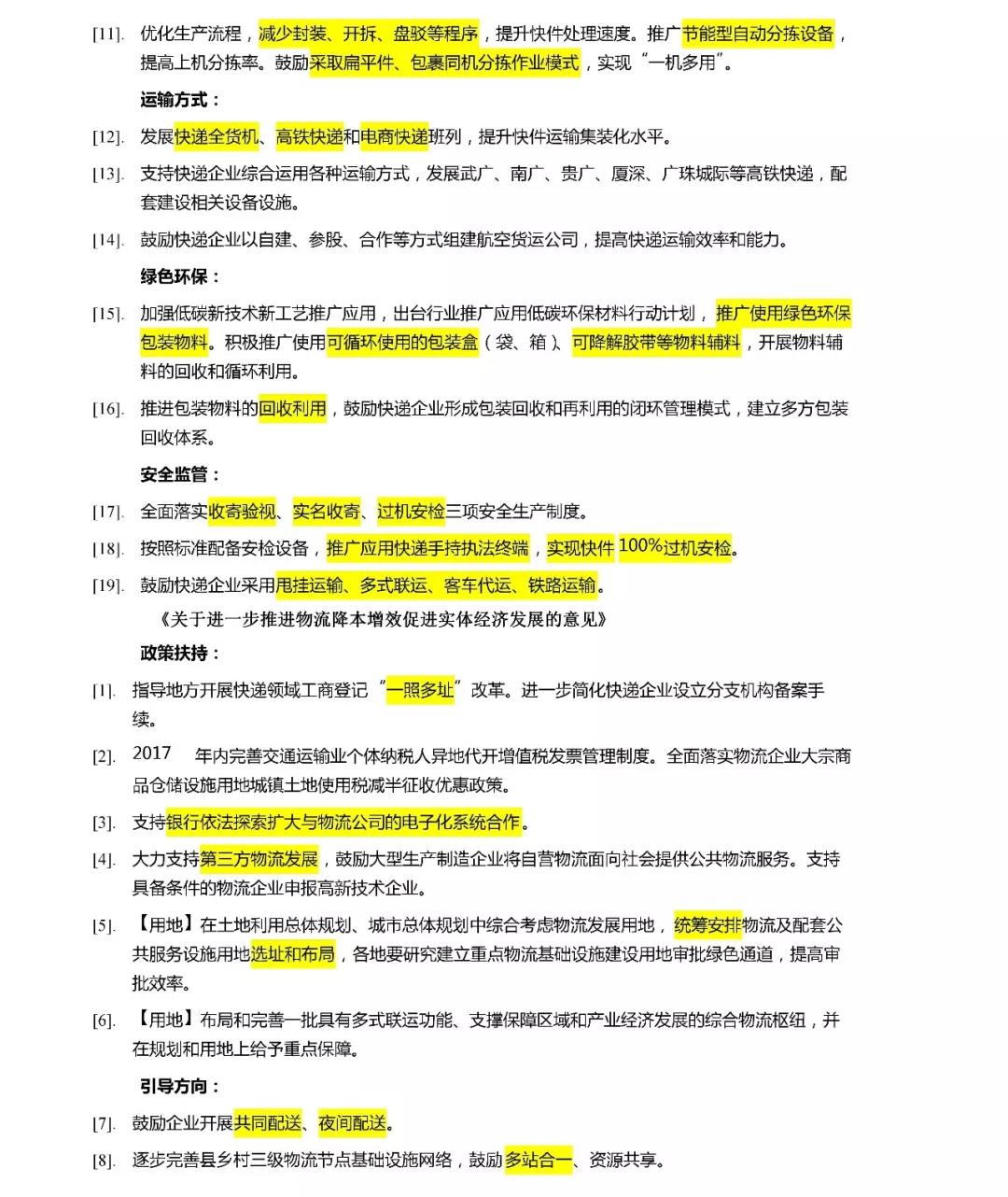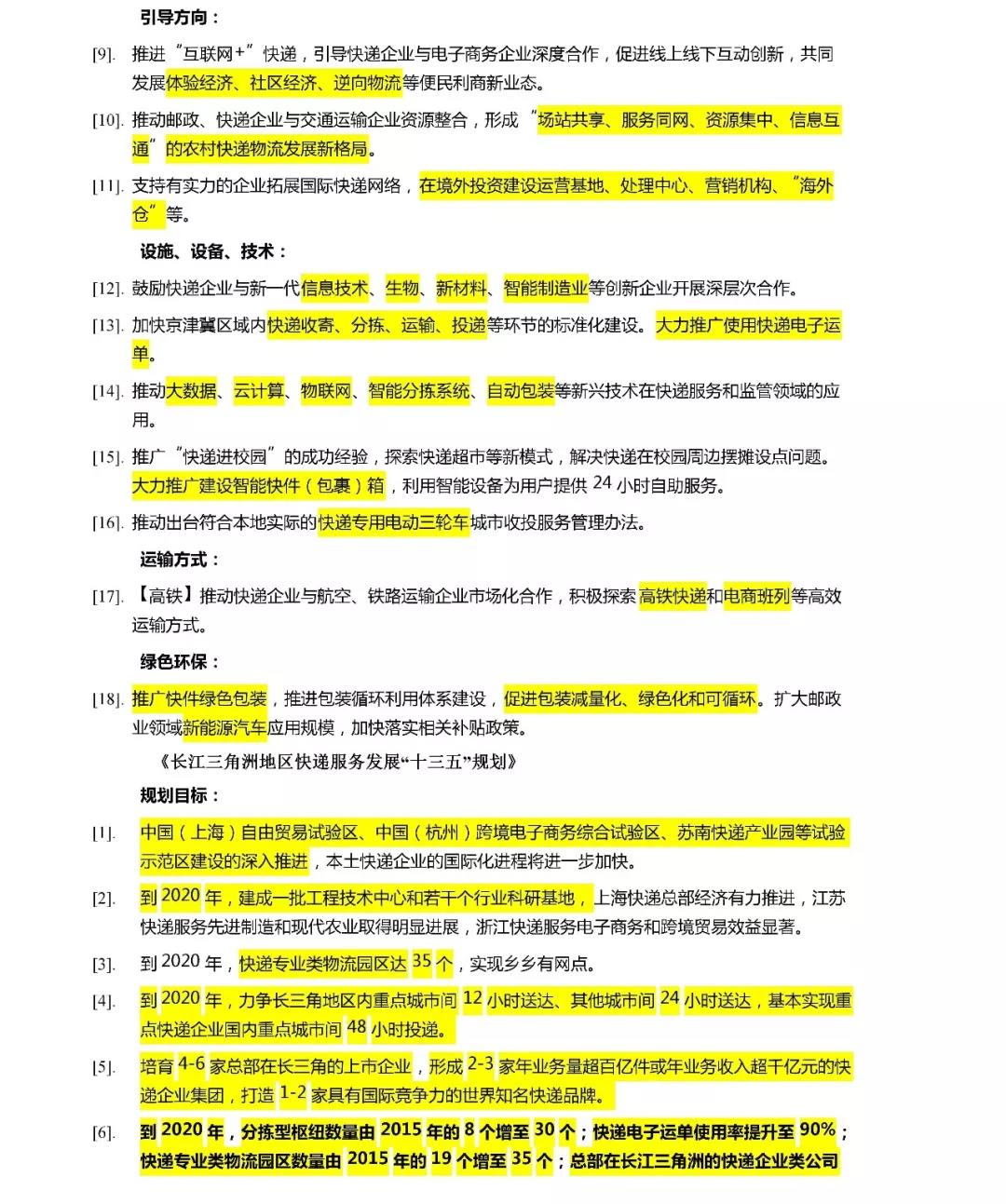(2)快遞發(fā)展方向政策也給出了指導(dǎo),主要為以下幾個(gè)方面: