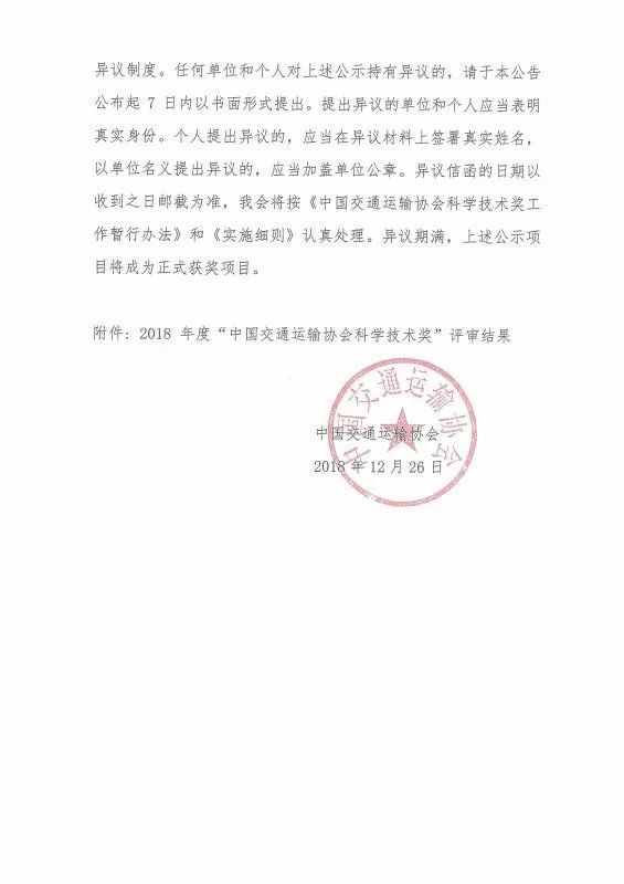 2018年度“中國交通運(yùn)輸協(xié)會科學(xué)技術(shù)獎”評審結(jié)果公示