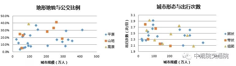 研究發(fā)現(xiàn),除了城市規(guī)模,城市之間的差異體現(xiàn)在許多方面,如城市地理環(huán)境、空間形態(tài)、城市職能、區(qū)位等,這些差異都或多或少地帶來交通特征的差異。尤其是改革開放以來,各城市發(fā)展的速度差異導致發(fā)展階段的差異。城市間的差異直接帶來經(jīng)濟水平、存量地區(qū)規(guī)模、機動車擁有、交通設施水平等的分化,導致不同的出行特征,包括出行距離分布、交通結(jié)構、出行目的、時間分布等。這種差異性不僅體現(xiàn)在城市之間,還體現(xiàn)在城市內(nèi)部不同功能、強度、發(fā)展階段的地區(qū)之間。