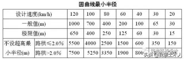 (3)有條件時,最好采用不設超高的最小半徑。