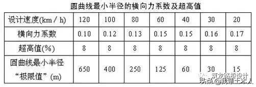 是各級公路采用最大超高imax和允許的最大橫向摩阻系數(shù)下保證安全行車的最小允許半徑。