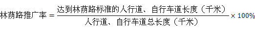 42、林蔭路推廣率(%)應(yīng)按下式計(jì)算: