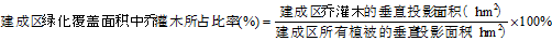 5、 建成區(qū)綠化覆蓋面積中喬、灌木所占比率應(yīng)按下式計(jì)算: