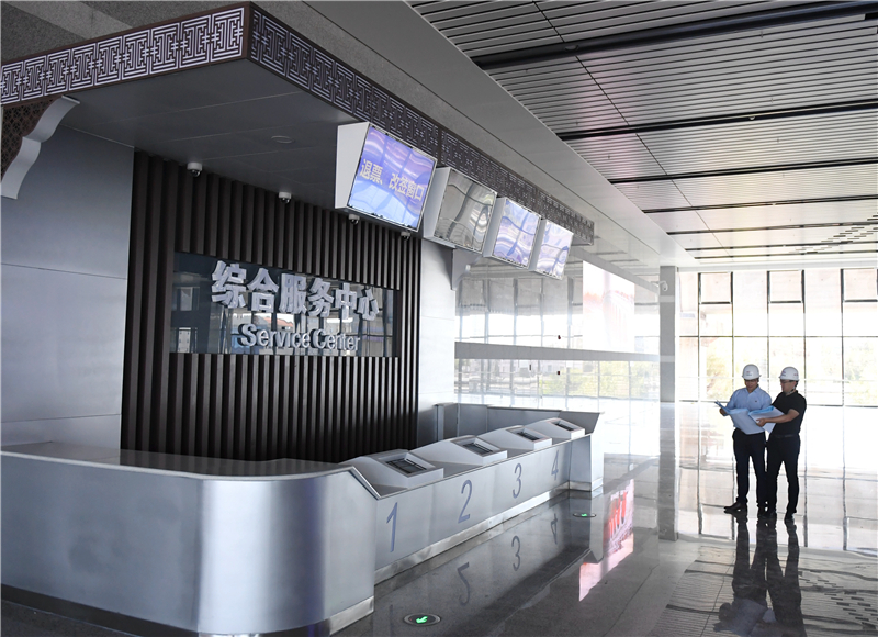 9月18日,工作人員對京雄城際北京大興站內的綜合服務中心進行驗收檢查。