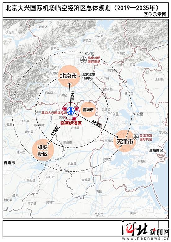 《北京大興國際機場臨空經(jīng)濟區(qū)總體規(guī)劃(2019—2035年)》區(qū)位示意圖。