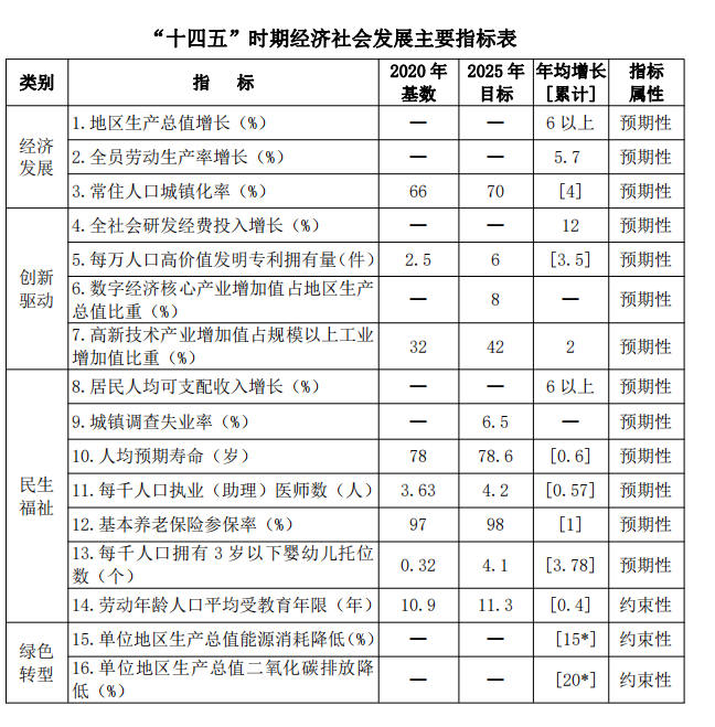 ——經(jīng)濟質(zhì)量效益顯著提升。京津冀協(xié)同創(chuàng)新共同體建設(shè) 縱深推進,高質(zhì)量發(fā)展體系更加完善,科技進步貢獻率明顯上 升,產(chǎn)業(yè)基礎(chǔ)高級化、產(chǎn)業(yè)鏈現(xiàn)代化水平大幅提升,農(nóng)業(yè)基礎(chǔ) 更加穩(wěn)固,實體經(jīng)濟、先進制造業(yè)、數(shù)字經(jīng)濟加快發(fā)展,現(xiàn)代 服務業(yè)高質(zhì)量提升。綜合經(jīng)濟實力和政府財力再上新臺階,全市生產(chǎn)總值、一般公共預算收入年均增長分別達到 6%以上、 10.6%,總量分別達到 8000 億元、1000 億元,省會首位度進一 步彰顯,區(qū)域中心城市輻射帶動能力和城鄉(xiāng)區(qū)域發(fā)展協(xié)調(diào)性明 顯增強。
