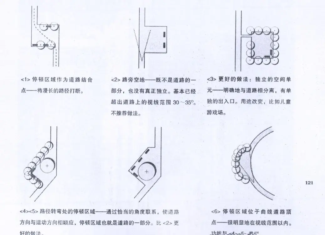 停頓區(qū)域是沿途的放大節(jié)點(diǎn)。從而將漫長的路徑分成若干段,提供了沿途的休息區(qū),而并不會讓人感到脫離了道路的走向,脫離那些新奇往來的事物。停頓區(qū)域不是簡單的貼在路邊,而應(yīng)該是從道路的某些位置可以看見。