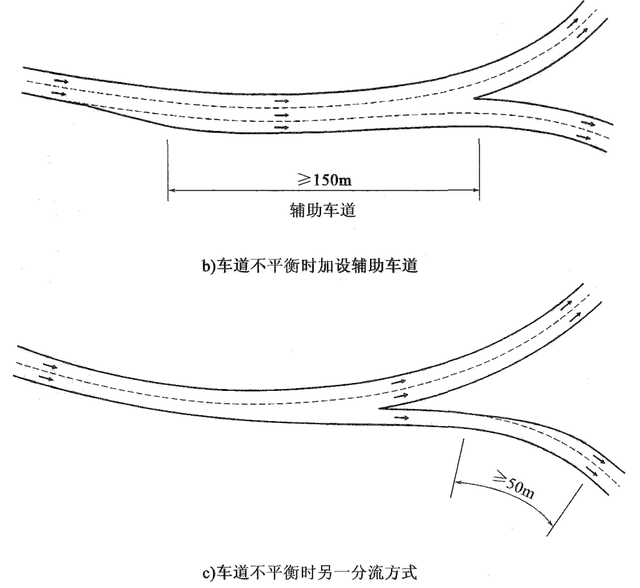 分合流車道平衡應(yīng)理解為交通量與車道數(shù)和通行能力的平衡,不是簡(jiǎn)單車道個(gè)數(shù)的平衡。