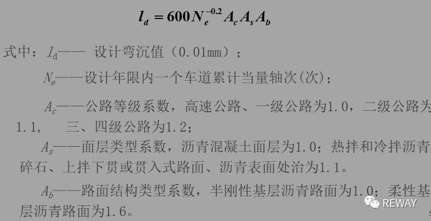 -當彎沉在非不利季節(jié)測定時,應根據當?shù)亟涷灴紤]季節(jié)影響系數(shù)的修正K1??紤]與相關規(guī)范的關系,設計規(guī)范將竣工彎沉值改為實測路表面代表彎沉值,竣工彎沉值由相關規(guī)范確定。另外,實測路表面代表彎沉值可根據三倍均方差原則處理個別過大或過小測點,然后再計算。