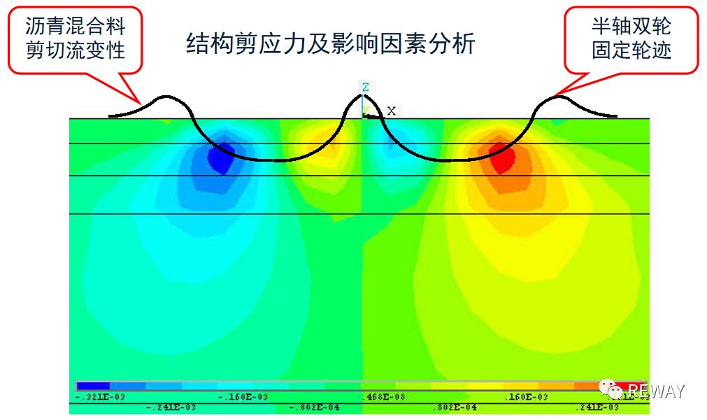 對于公路來講,不會象城市道路那樣出現(xiàn)過多制動與起車,因而水平荷載要小得多,考慮車輛行車荷載的滾動摩阻力。但對于山區(qū)高速公路或者縱坡較大、坡度超長路段應考慮車輛荷載的水平分量所產生的路表剪應力。目前瀝青路面抗剪強度設計指標的研究尚不成熟,未列入本次規(guī)范修訂的內容。