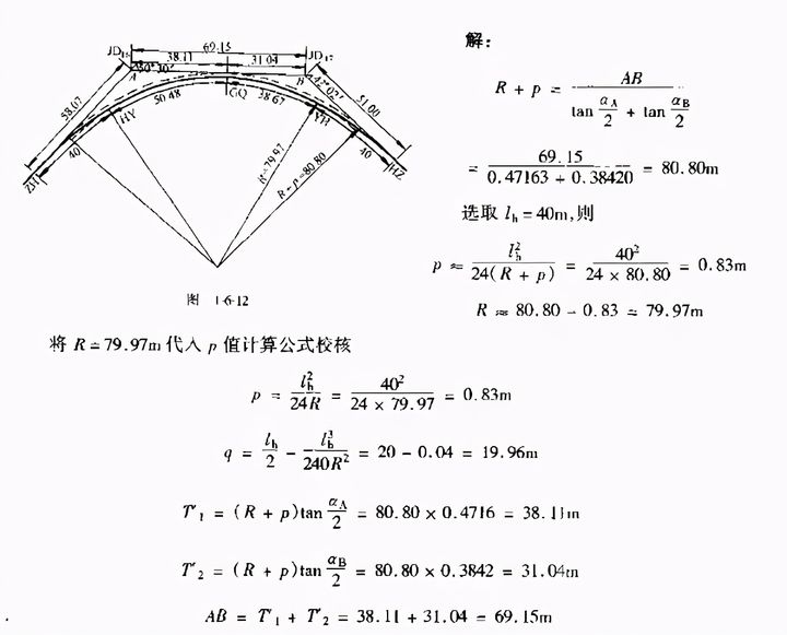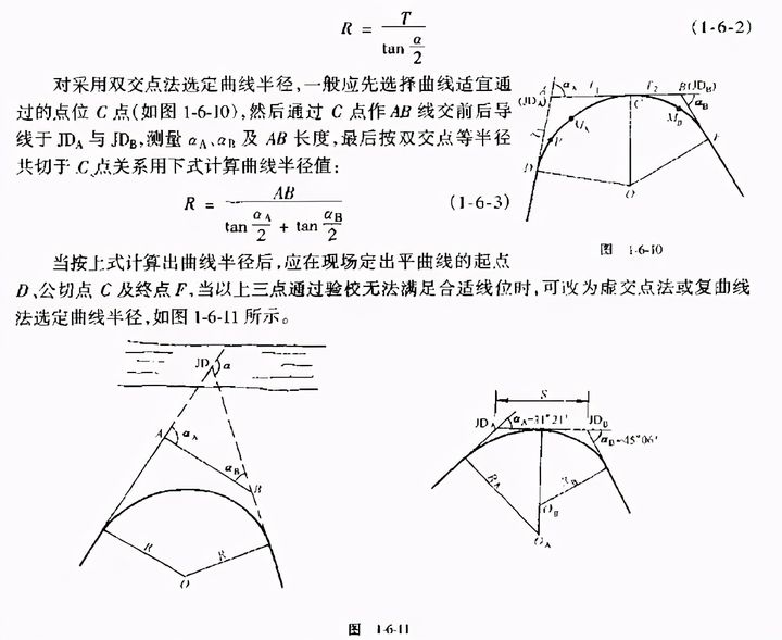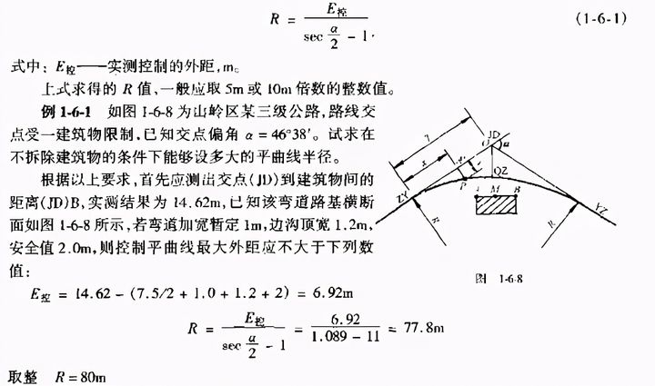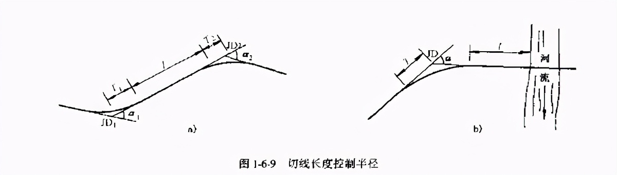 當(dāng)已知交點(diǎn)偏角.其他條件不受限制時(shí),如果平曲線半徑選得過(guò)小,則曲線長(zhǎng)度太短顯然對(duì)行車(chē)不利。此時(shí)應(yīng)用平曲線的最短允許長(zhǎng)度來(lái)控制半徑,其計(jì)算公式為