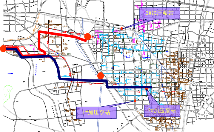 環(huán)狀管網(wǎng):管網(wǎng)主干線之間連通構(gòu)成環(huán)形。
