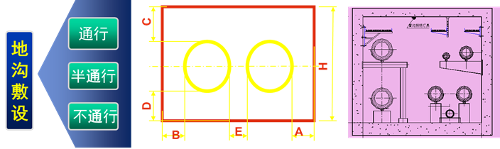 管溝敷設(shè)首選不通行管溝敷設(shè);穿越不允許開(kāi)挖檢修的地段時(shí),采用通行管溝敷設(shè);通行管溝困難時(shí),采用半通行管溝敷設(shè)。