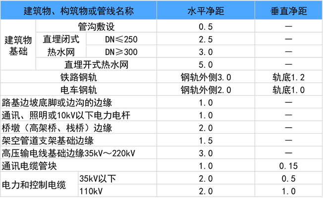 地下敷設(shè)熱網(wǎng)與建(構(gòu))筑物或其它管線距離