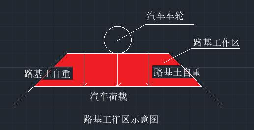 路基工作區(qū):是指汽車荷載通過路面?zhèn)鬟f到路基的應力與路基土自重應力之比大于0.1的應力分布范圍。