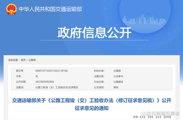 為促進(jìn)公路基礎(chǔ)設(shè)施高質(zhì)量發(fā)展,進(jìn)一步規(guī)范公路工程竣(交)工驗收工作,我部對《公路工程竣(交)工驗收辦法》進(jìn)行了修訂,現(xiàn)向社會公開征求意見。公眾可通過以下途徑和方式提出反饋意見: