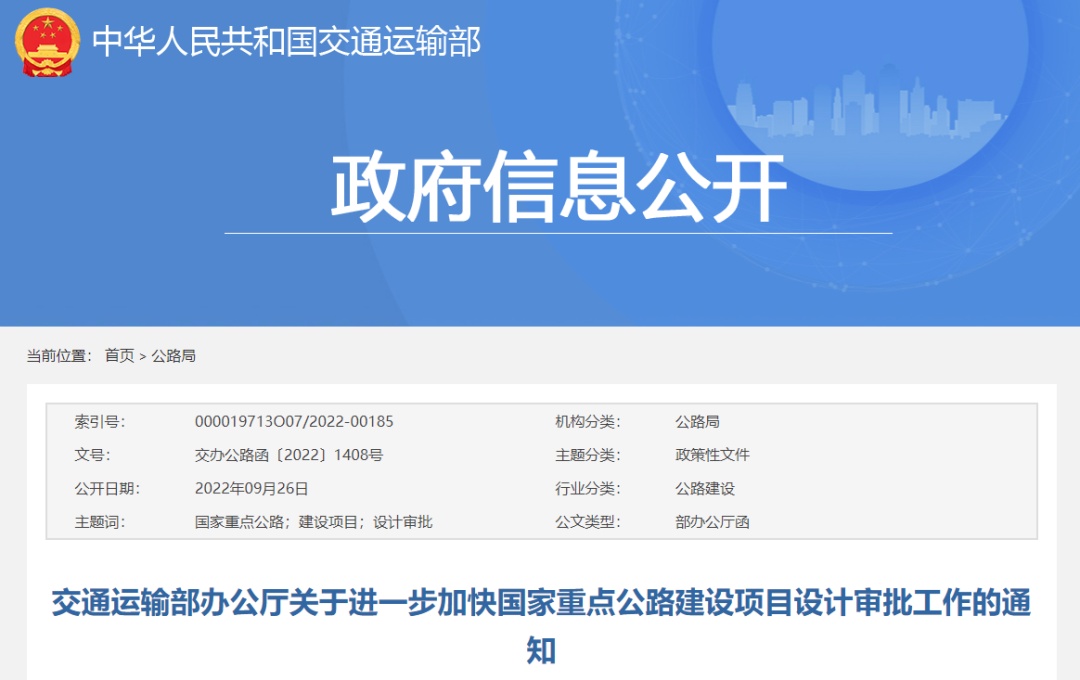 交通運(yùn)輸部:加快國家重點(diǎn)公路建設(shè)項(xiàng)目設(shè)計(jì)審批工作