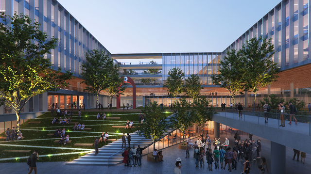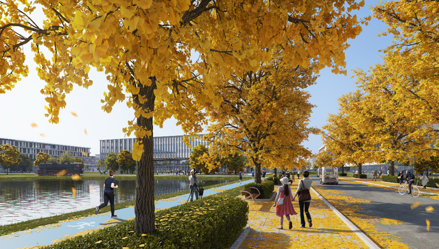打造以學(xué)科貫通為核心的研究型校園,是北交大雄安校區(qū)規(guī)劃設(shè)計(jì)的重點(diǎn)。規(guī)劃方案設(shè)計(jì)了一條校園“學(xué)術(shù)中軸”,公共教學(xué)、實(shí)驗(yàn)、研究等功能一應(yīng)俱全,可承載三大一流學(xué)科群和兩大基礎(chǔ)學(xué)科建設(shè)。該校雄安校區(qū)還以交大校訓(xùn)和飲水思源的傳統(tǒng)為名,規(guī)劃了三大廣場(chǎng):思源、知行、天佑,打造了新明湖水系和24小時(shí)開(kāi)放書院全時(shí)交流共享空間。