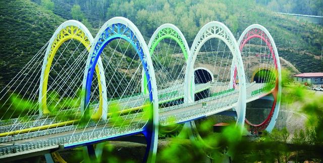沿線地形復(fù)雜,施工場(chǎng)地受限,橋梁、隧道數(shù)量多,橋隧比達(dá)56%,局部路段橋隧比高達(dá)90%以上,其中松山特長(zhǎng)隧道長(zhǎng)9.2km,為華北地區(qū)最長(zhǎng)公路隧道。