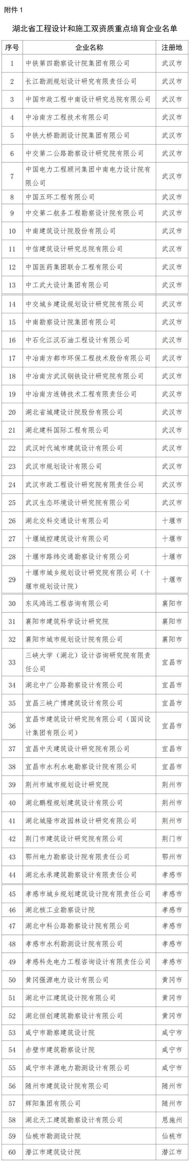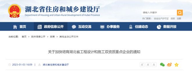 1月3日,湖北省住建廳發(fā)布《關(guān)于加快培育湖北省工程設(shè)計和施工雙資質(zhì)重點企業(yè)的通知》。