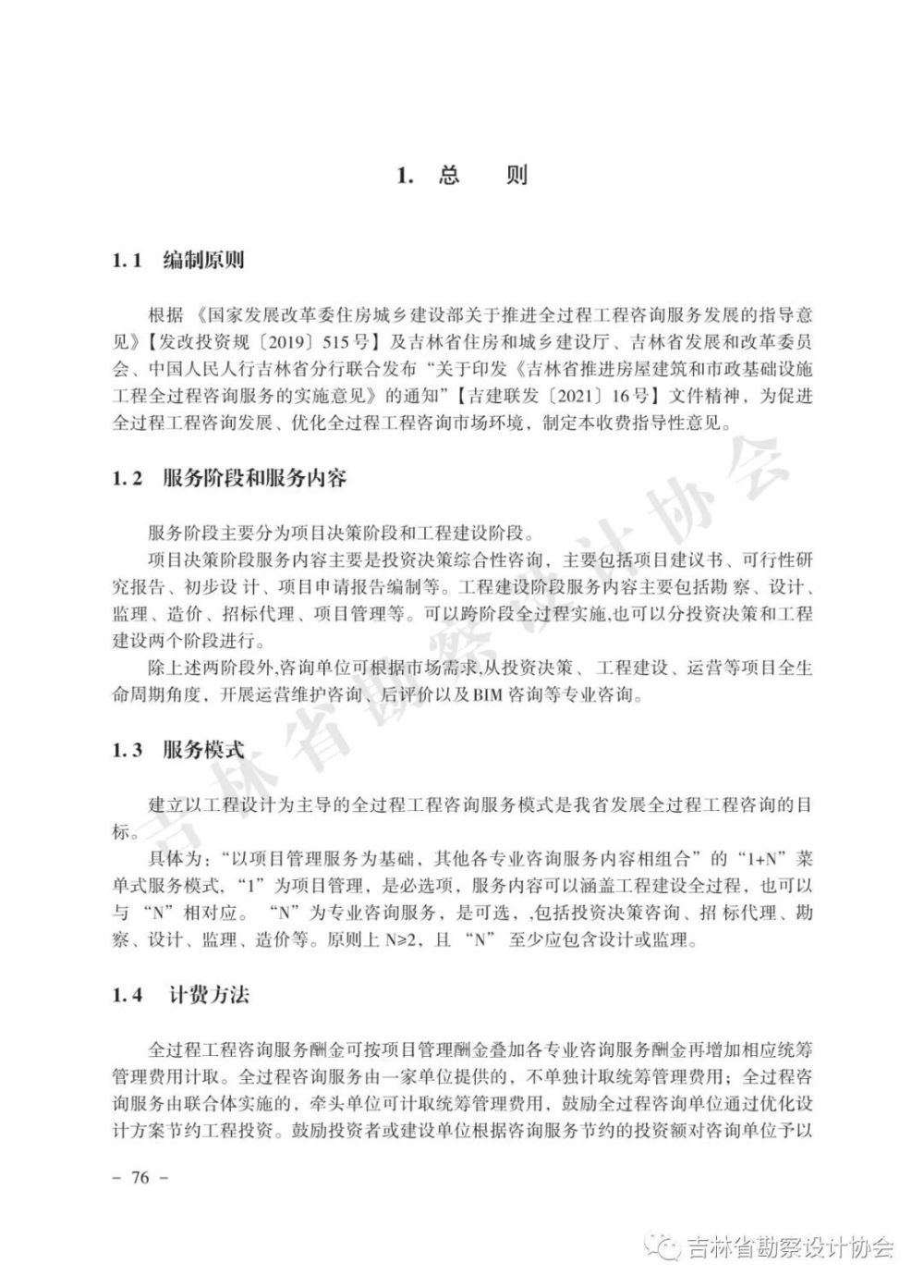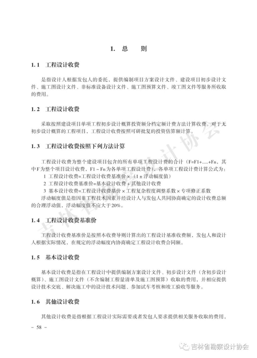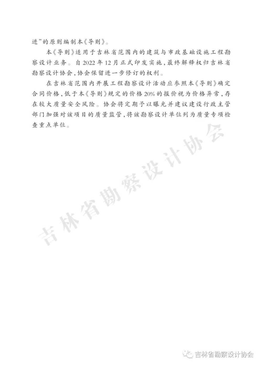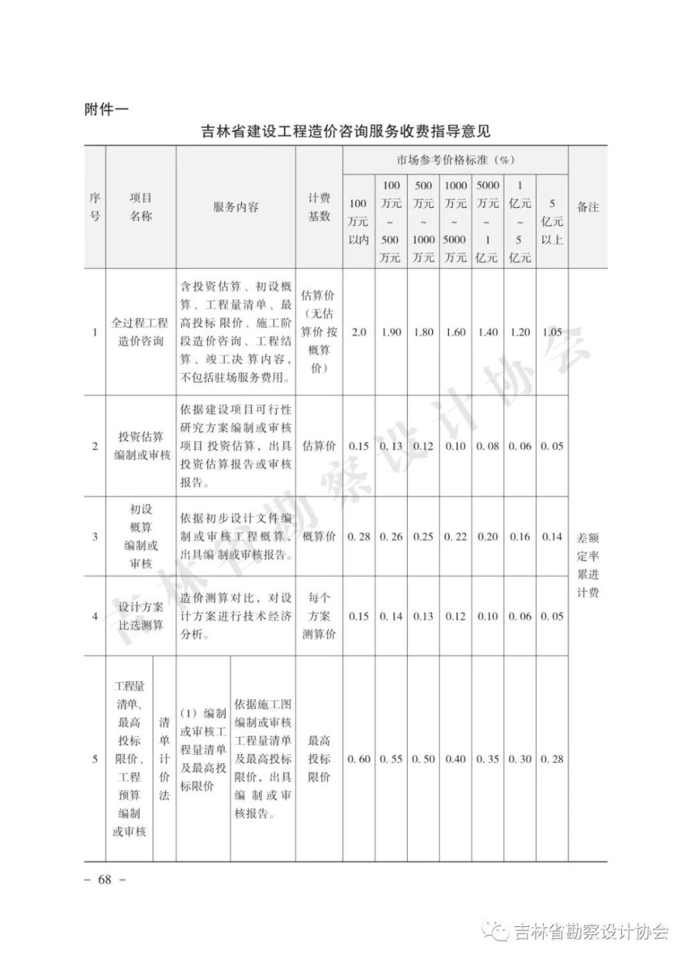 為進一步維護公平有序的市場環(huán)境,引導勘察設計市場健康發(fā)展,近日,吉林省工程勘察設計行業(yè)協(xié)會發(fā)布地方工程勘察設計收費導則,對工程勘察、建筑工程、全過程工程咨詢、市政工程設計收費進行規(guī)定。