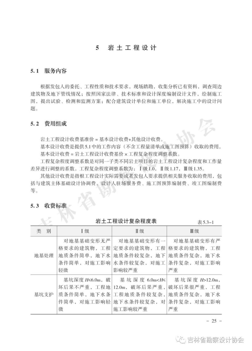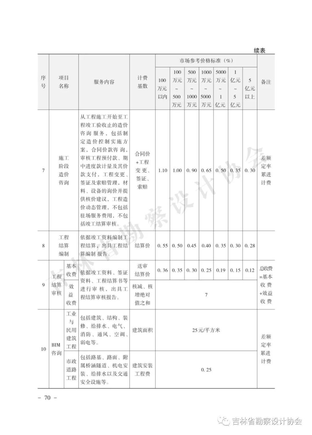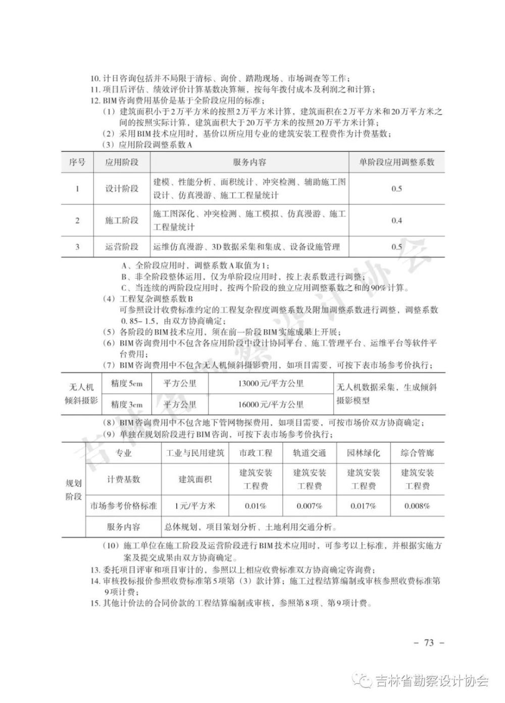 吉林省勘察設計協(xié)會通過對各地市勘察設計服務成本要素信息進行統(tǒng)計、分析及研究,在組織會員單位充分研討的基礎上,結合該省市級情況,對《吉林省建筑工程勘察設計收費指導價(試行)》予以修編,形成了《吉林省工程勘察設計收費導則》。