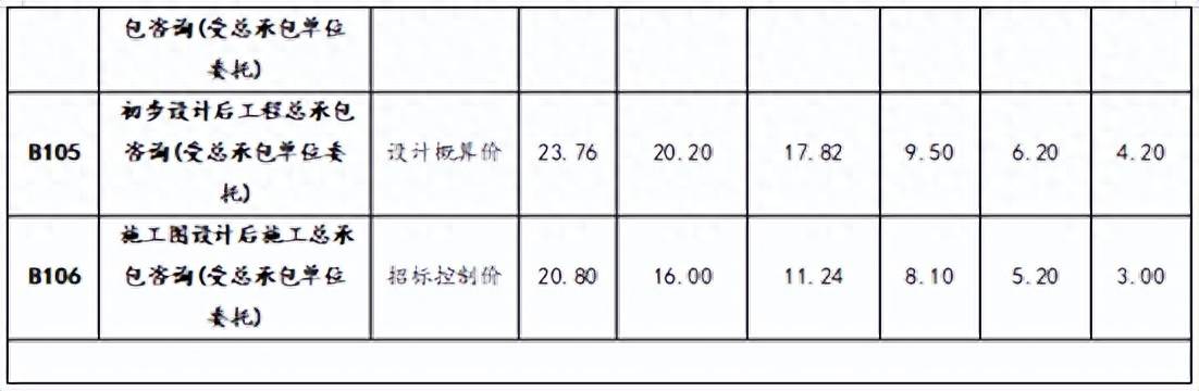 根據(jù)工程造價(jià)咨詢(xún)服務(wù)項(xiàng)目實(shí)際使用情況,現(xiàn)決定對(duì)四川省造價(jià)工程師協(xié)會(huì)印發(fā)的《四川省工程造價(jià)咨詢(xún)服務(wù)收費(fèi)參考標(biāo)準(zhǔn)(試行)》(川建價(jià)師協(xié)〔2022〕56號(hào))的部分收費(fèi)參考標(biāo)準(zhǔn)進(jìn)行調(diào)整。部分標(biāo)準(zhǔn)調(diào)整結(jié)果如下: