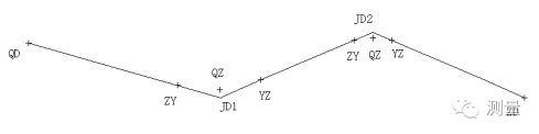 ② 確定 QZ點(diǎn):從JDl開始,沿JDlP向P方向量取外矢距的長度,此點(diǎn)即為QZ點(diǎn)。具體操作如下: