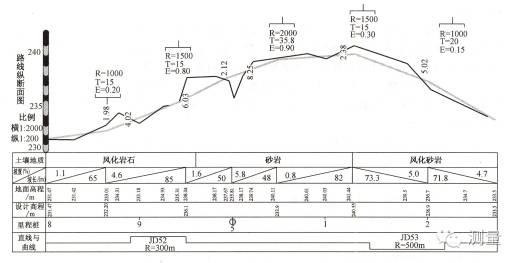 道路工程具有組成復(fù)雜、長寬高三項(xiàng)尺寸相差懸殊、形狀受地形影響大等特點(diǎn),因此它的圖示方法與一般工程不完全相同。它的平面圖就是一個(gè)帶狀地形圖,縱向斷面圖是沿公路中心線的縱剖面圖,橫斷面是道路中心線法線方向的斷面圖,根據(jù)這三種圖所表示的內(nèi)容的差異,通常采用的繪圖比例各不同,繪圖比例的選擇,應(yīng)遵循圖面布置合理、均勻、美觀的原則,使繪出的圖形有較好的可讀性。