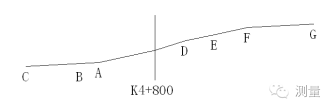 下面以表11-5的測量數(shù)據(jù)為例,繪制樁號為K4+800處的道路橫斷面的地面線。